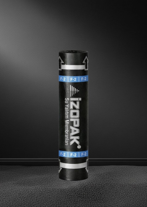 İzopak F-2, cam tülü taşıyıcılı ve PE/PE yüzey kaplamalı bitümlü su yalıtım membranıdır. Temel-perde bohçalama, teras ve çatı gibi uygulamalarda suya karşı güvenilir bir bariyer oluşturur. Şaloma ile tam yapışma sağlandığında derzlerde yüksek sızdırmazlık performansı sunar.